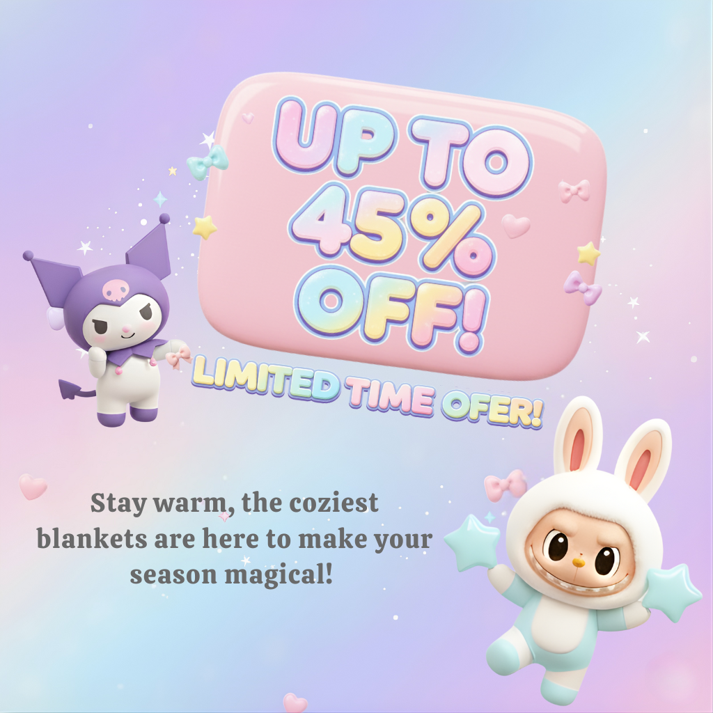 Style your room with the cutest blankets and upgrade your plushy collection with the most adorable sanrio liscensed plushies!